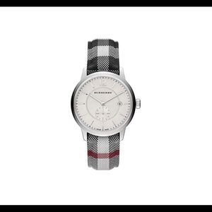 BRACELET: Black, White and Red Canvas and Leather Strap with Buckle Clasp