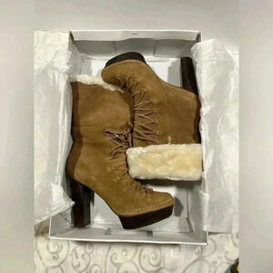 NIB!Calvin Klein Keona suede Wood heel lace up boot size 9