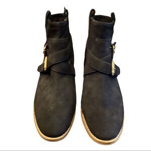 New in Box. Cole Haan women's "Jensynn" black, suede, leather booties with double buckles.