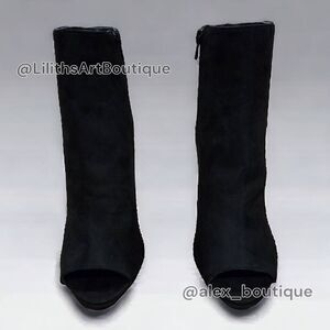 NIB Fashion Nova Black Suede Peep Toe Ankle Block Heel Booties(F007)Size 10