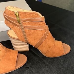 NIB Franco Sarto Camel Color Heeled Peep Toe Shootie