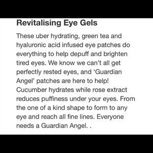 These uber hydrating, green tea and hyaluronic acid infused eye patches do everything to help depuff and brighten tired eyes. We know we can’t all get perfectly rested eyes, and ‘Guardian Angel’ patches are here to help! Cucumber hydrates while rose extract reduces puffiness under your eyes. From the one of a kind shape to form to any eye and reach all fine lines. Everyone needs a Guardian Angel. .