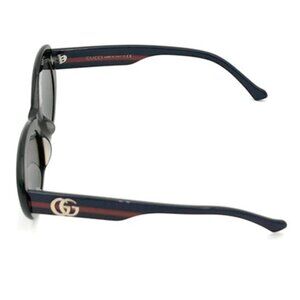 This eyewear collection blends a sleek silhouette and signature motifs in a contemporary design. These cat-eye sunglasses feature a Interlocking G detail on the navy and red temples.
