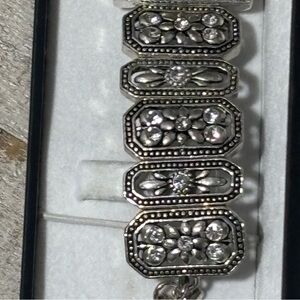 NIB❤️Jennie B Silver & Rhinestone Floral Scroll Toggle Watch