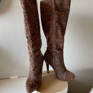 NIB JustFab Janae Leopard Kneed Boots Size 8