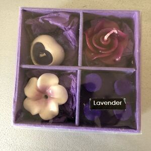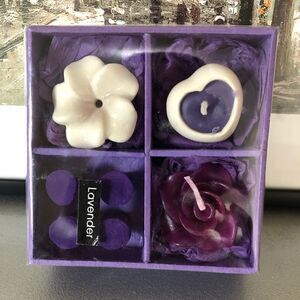 Cute mini lavender incense and candle gift set in purple.