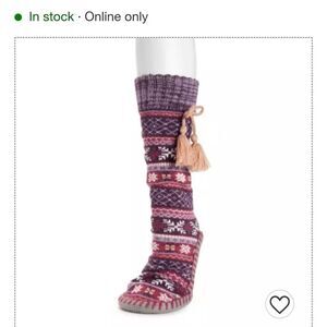 NIB Muk Luks Tassel Slipper Socks XL Berry Fair isle design with grey sole