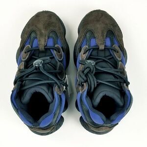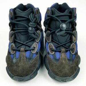 New in box with tags. The Adidas Yeezy 500 High “Tyrian” is a Spring 2020 colorway that fuses vintage performance basketball aesthetics with hiking boots for a look in and of itself. Only the second colorway of the high-top Yeezy 500 to release, this version features a navy blue neoprene base along the forefoot, mid-panel, and collar. Supple brown suede and black leather overlays on the toe, mid-panel, and collar provide a contrasting appearance that riffs on hiking footwear. Unlike the previously released "Slate" Yeezy 500 High, this colorway introduces an adjustable lace toggle on top the black neoprene tongue. Recalling nostalgic technology from adidas’s archives, both the adiPRENE midsole and Feet You Wear outsole introduce a decidedly nostalgic element to this contemporary design. 100% Authentic.