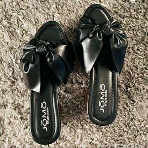 Bad Girl’s Girl Platform Bow Heels have a wooden look at the platform sole and chunky heel, a faux leather upper with a peep toe design and a bow detail. *Brand new in box. Authentic brand