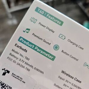 This is a new in box set of over ear wireless earbuds by PocBuds. The style is T60 and the color is pearl grey. They come with a charging case.
