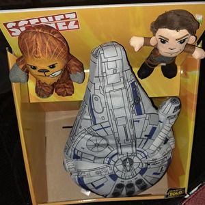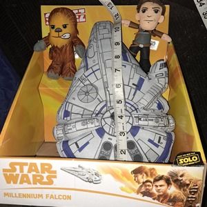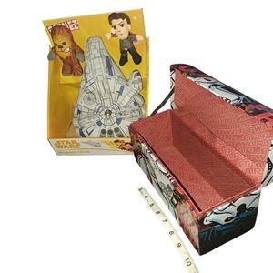 NEW - Storm Trooper Large Cardboard Domed Lunch Box - along with New set of fun Star wars Pillows for fun times and great decor. The Lunch Box is heavy duty cardboard and probably best used as decor or toy storage. Star Wars Scenez Millennium Falcon Play Set Plush Han Solo Chewbacca Sw10905