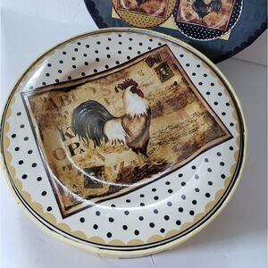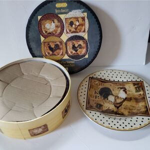NIB Sakura Retro Rooster Plates 4 Piece Set