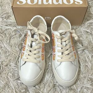 NIB Soludos Hot Stuff Ibiza Leather Lace Up Platform Sneakers White Multi Sz 7