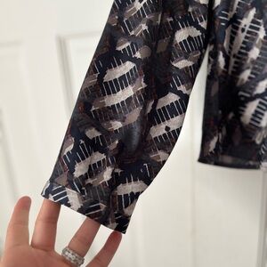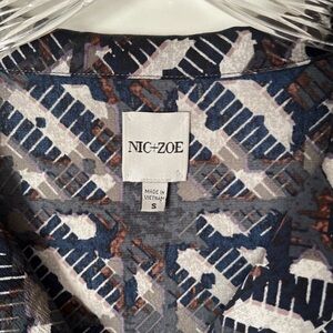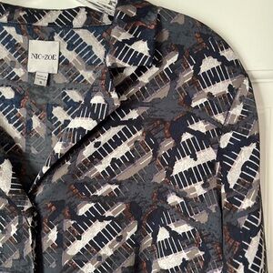 NIC + ZOE Abstract Printed Blouse. Absolutely beautiful color scheme in deep plum, rust and taupe. Please see all photos for details and condition. Size S.