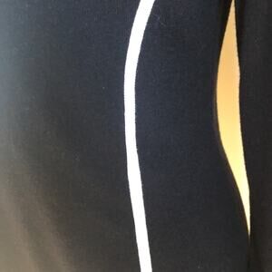 DETAILS:. Black Medium sweater with cream/white piping for a beautifully flattering look. 60% Cotton/40% Modal