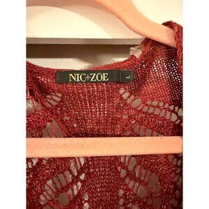 NIC + ZOE LONG RED SHAWL CARDIGAN SWEATER SZ LARGE L WOMENS