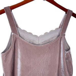 Beautiful and Brand New Velvet Lace Cami from Nic + Zoe. This Top is the perfect layering piece that features a rich velvet style. Velvet and Lace combination in a very flattering tank design. Bra friendly straps in a knit fabric construction of Poly, Nylon and Spandex. V neckline with delicate lace trim. Sits at hip. Please note the red mark on interior tag. Color is Cafe Au Lait. Woman’s Size Medium