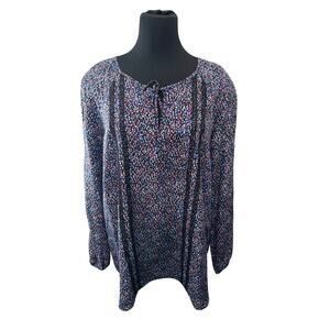 NIC + ZOE | Silk Blend Long Sleeve Blouse Top Multicolor Dot Print | Size XL