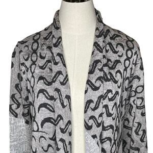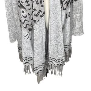 NIC + ZOE Size Medium Waterfall Fringed Cardigan Multi Design on Taupe/Gray