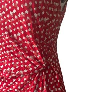Add a pop of color to your wardrobe with this stunning NIC + ZOE sleeveless dress. Featuring a vibrant red and white geometric print, this flattering faux wrap style includes gentle ruching at the waist for a figure-enhancing silhouette. Perfect for work, brunch, or summer events!