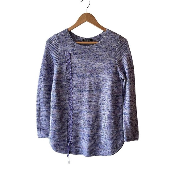 Nic + Zoe Size M Purple Space Dyed Textured Knit Linen Blend Sweater