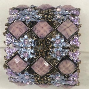 Chunky Cuff Bracelet with Cube Purple Stones and Floral Detail.