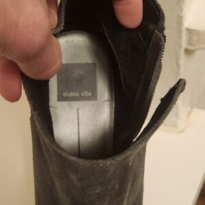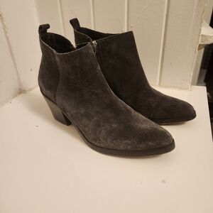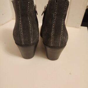 Deep gray genuine suede ankle boots with cute detail on the back. EUC Size 7.5