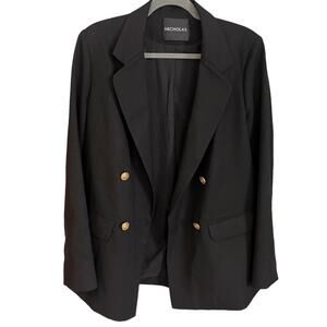 NICHOLAS Black Double Breasted Blazer Gold Medallion Buttons Size 10