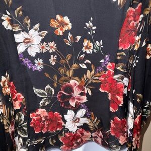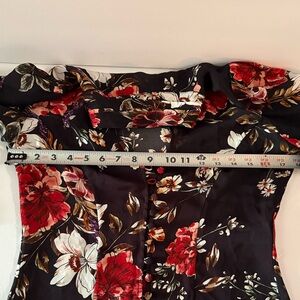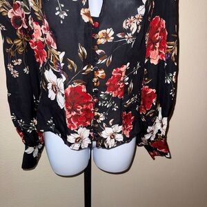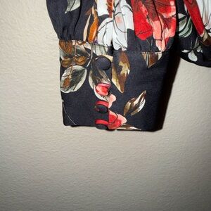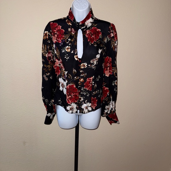 NICHOLAS Black Red Floral 100% Silk Keyhole Button Up Blouse Women’s Size XS/S*