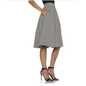 NICHOLAS BLACK & WHITE STRIPED PONTE KNIT HIGH RISE MIDI SKIRT SIZE 2