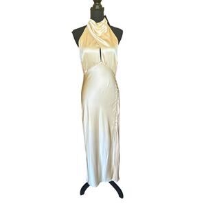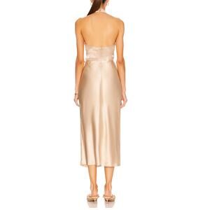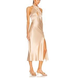 NICHOLAS Champagne Satin Midi Slip Dress Size 8 Silk Bias Cut Designer $495 NEW