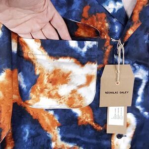 NICHOLAS DALEY Mens Shirt Medium Blue Button Up Utility SUMINIGASHI ALOHA $695