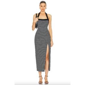 NWOT NICHOLAS Jane Contrast Square Neck Midi Dress in Solid Black & Milk