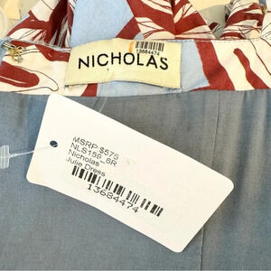 NICHOLAS Julie Cotton Floral Midi Dress Ruffle Detail and Pockets Blue Size 6