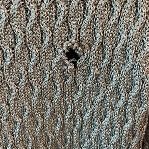 Can be mended by a professional or a great piece for someone who can DIY fix this sweater