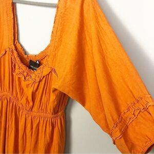 NICHOLAS | Orange Linen Blend Prairie Style Midi Dress Women’s Size 10