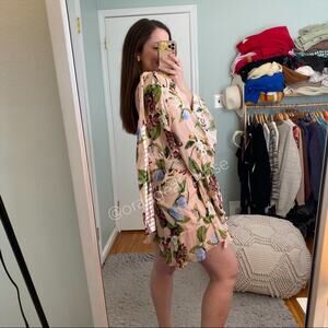 NICHOLAS Peach Pink Floral Print Silk Flare Sleeve Romper Long Sleeve 6 Small