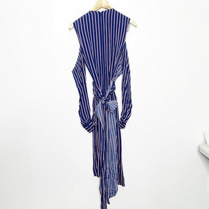 NICHOLAS Pinstripe Wrap Dress Navy Blue Midi silk cold shoulder women's 2
