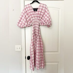NICHOLAS Plaid Smocked Panel Midi Dress