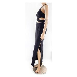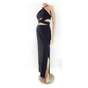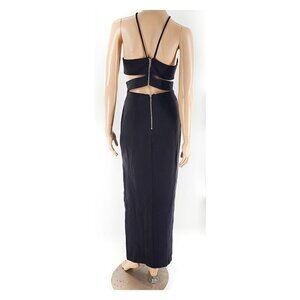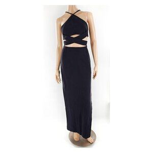NICHOLAS Ponti Wrap Cross Band Black Maxi Dress With Side Slit