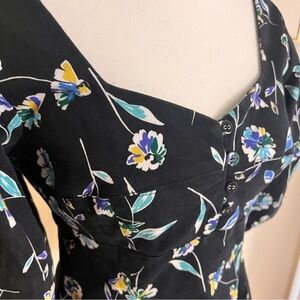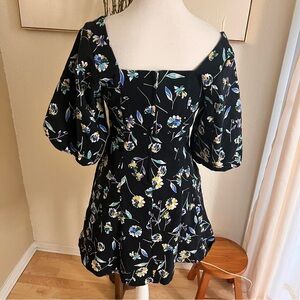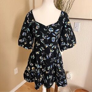 NICHOLAS Puff Sleeve Mini Dress Lydia Black Floral Print Cotton Size 6