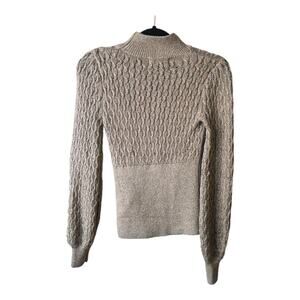 Puffed sleeves and a fitted waist balance out this metallic knit Nicholas sweater that's easy to tuck into high waists or leave out.