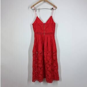 NICHOLAS Rouleau Red Lace Sleeveless V-Neck Midi Dress Size 6 Women's Preowned