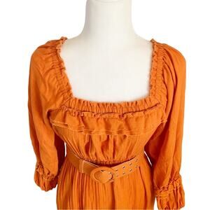 NICHOLAS Ruffled Linen Midi Dress 0 Orange