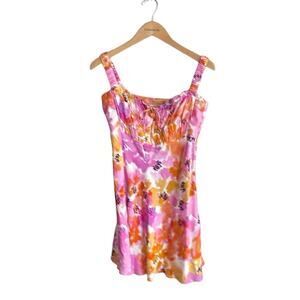 Pink/multicolour floral-print elasticated dress from NICHOLAS featuring all-over floral print, sweetheart neck, elasticated straps and thigh-length.