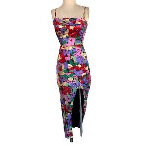 NICHOLAS Skyler Draped Midi Dress in Cabra Print 0 New Womens Floral