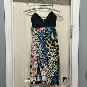 NICHOLAS Spaghetti Strap Sweetheart Printed Midi Dress Abstract Black Multi/0