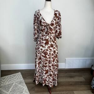 Swirls of bohemian florals paint a pretty picture on this tie-detailed dress by Nicholas.