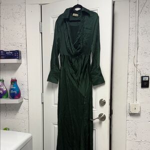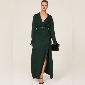 NICHOLAS Deep Green Satin Dress Maxi - NEW - Size 6 BELTED