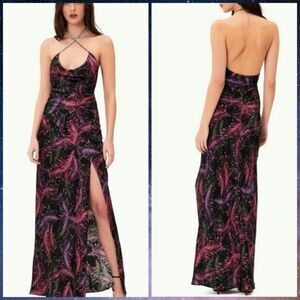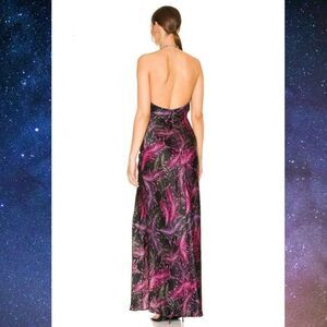 NICHOLAS Melia Cocktail Dress 100% Silk Rhinestone Halter Neck